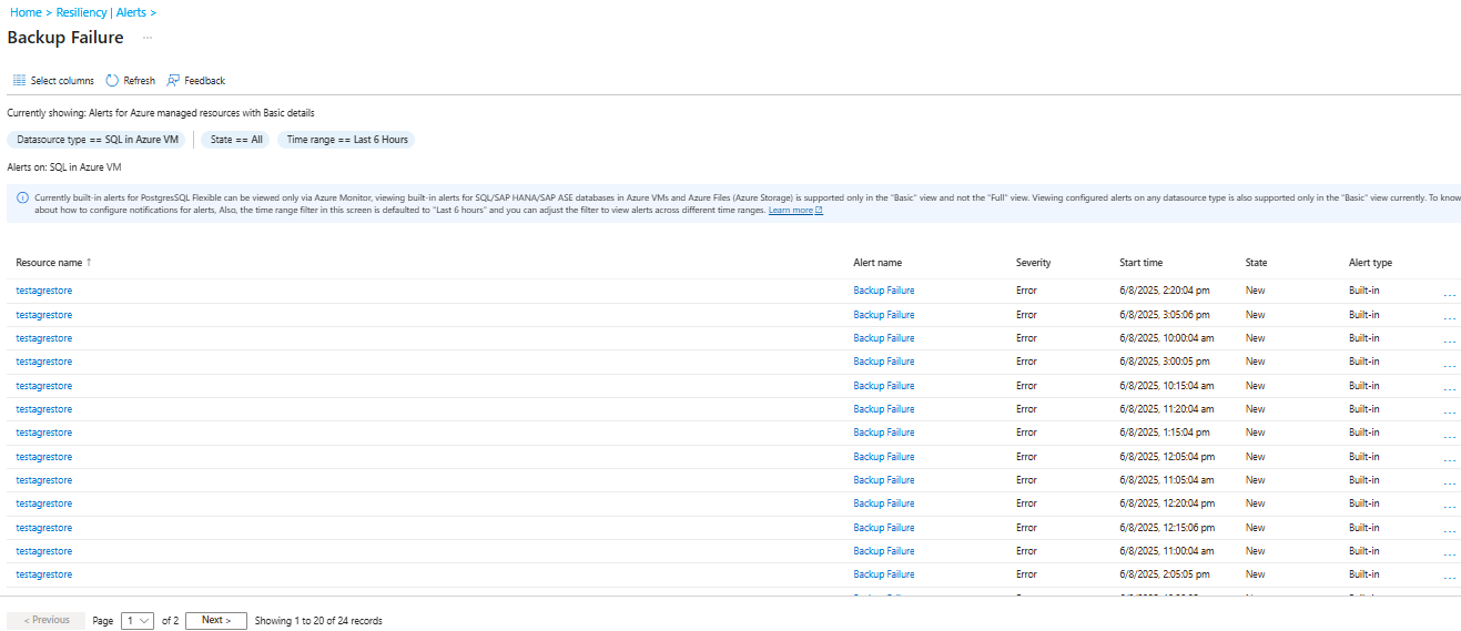 Azure Backup raises built-in alerts via Azure Monitor for the following SQL database backups scenarios: