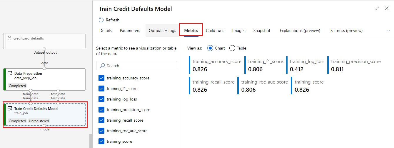 You can track the progress of your pipeline by using the link generated in the previous cell. When you first select this link, you might see that the pipeline is still running. When it's complete, you can examine each component's results.