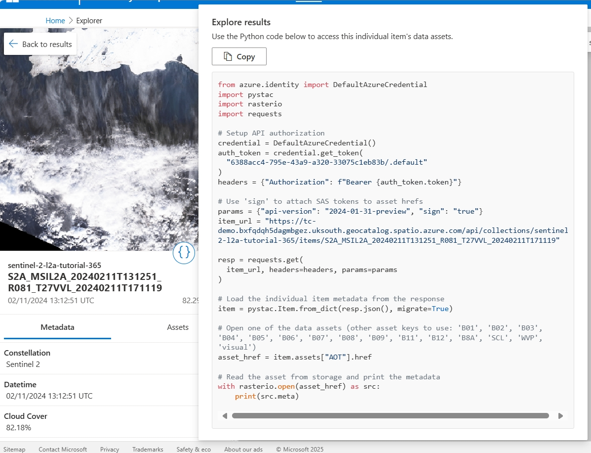 - An Azure Microsoft Planetary Computer Pro GeoCatalog