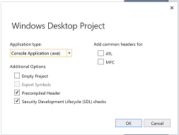The Windows Desktop Wizard replaces the Win32 Application Wizard in Visual Studio 2017 and later. The wizard allows you to create any of four types of C++ projects (listed in the heading in the table below). In each case, you can specify additional options that are appropriate for the type of project you open.