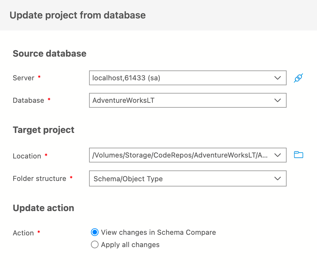For more information about schema comparison and SQL projects, see the Schema comparison overview.